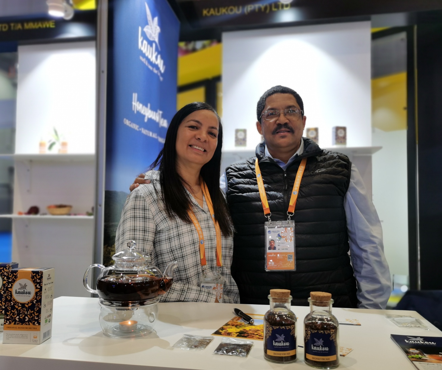 和萨夫不同,南非展商柏妮丝·亚当姆斯是第一次参加进博会,她带来的南非特色草本茶在展会上受到热烈欢迎。
