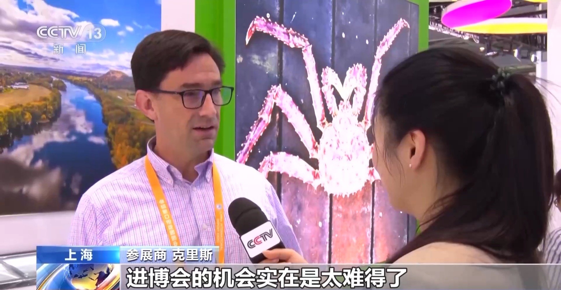 进博会的最后一天,记者来到美国食品和农产品馆时,美国参展商克里斯依旧在紧张地和客户对接洽谈,此时距离闭幕只剩下不到六个小时。