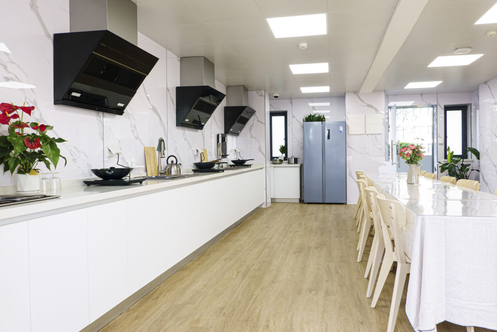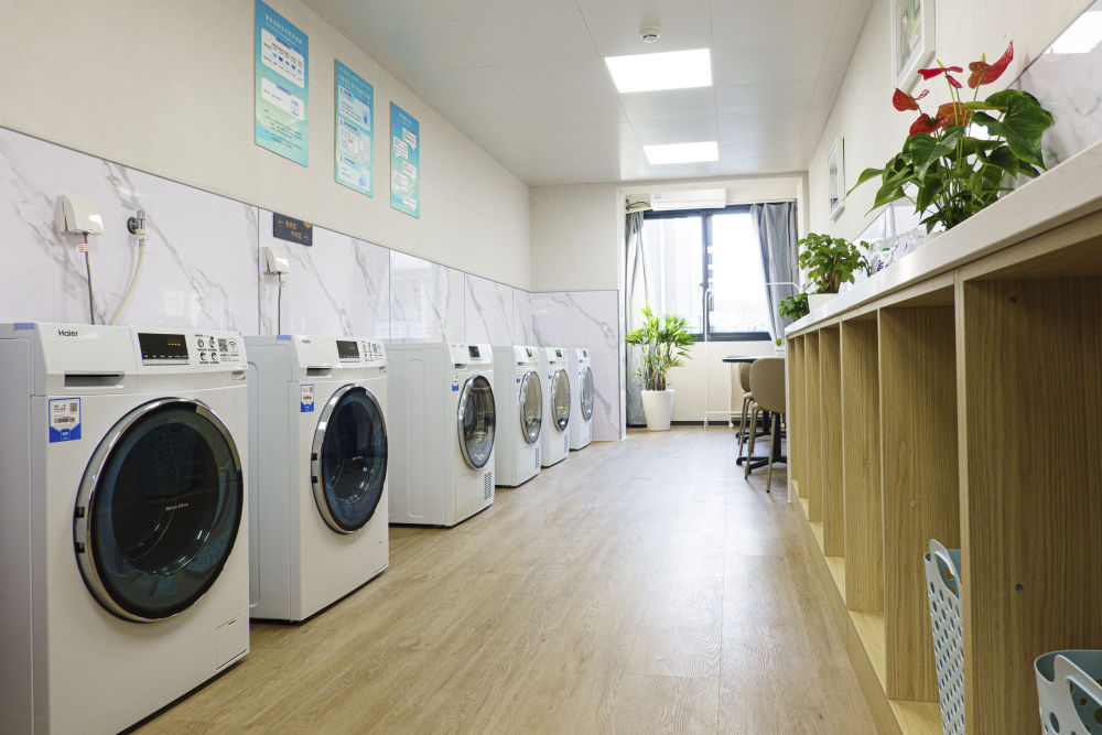 闵行区新时代城市建设者管理者之家的共享厨房和共享洗衣房。