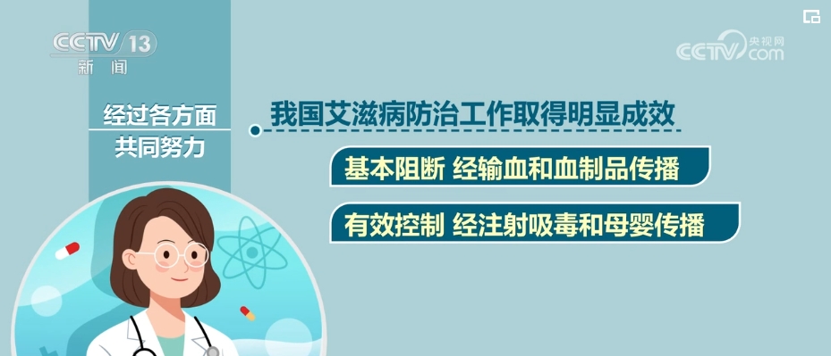 经过各方面共同努力,我国艾滋病防治工作取得明显成效,基本阻断了经输血和血制品传播,有效控制了经注射吸毒和母婴传播。