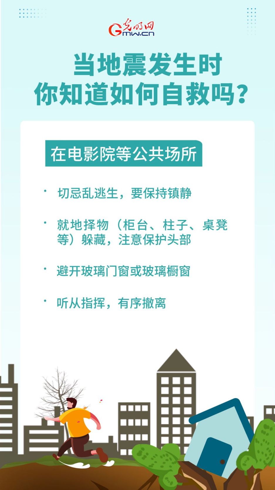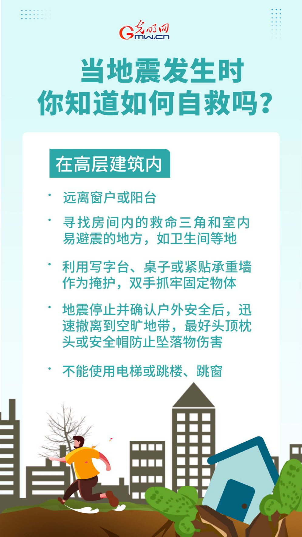 2023-12-22 21:48:20 来源:光明网 责任编辑:黄丽红 作者:当地震发生时,你知道如何自救吗? 12月18日23时59分,甘肃省临夏州积石山县发生6.2级地震。破坏性地震发生后,被埋压人员能否得到迅速、及时的救治,对于减少震灾死亡意义重大。掌握自救方法,对保护个人的生命安全和后续救援工作的开展有重要作用。你知道如何自救吗?