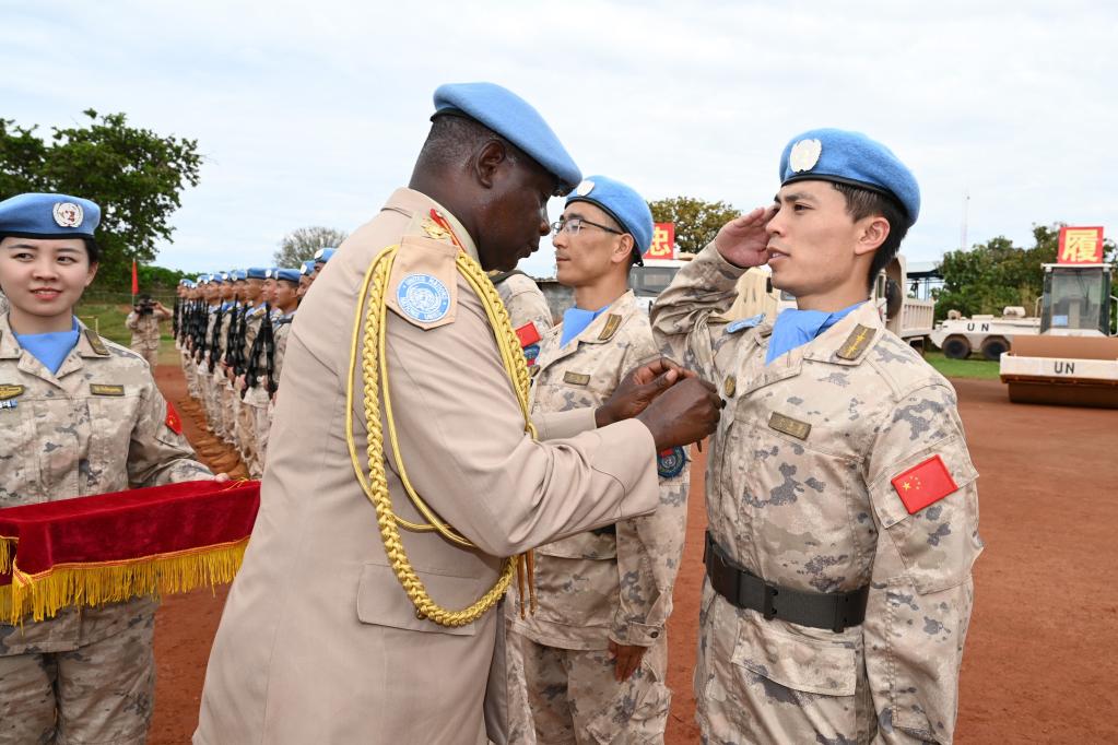 2023年10月28日,在联合国驻南苏丹特派团瓦乌超级营地的中国工兵营区,联南苏团西战区司令哈根(中)在授勋仪式现场授予中国维和官兵联合国“和平荣誉勋章”。新华社发(李飞宇摄) 和平发展思想是中华文化的内在基因,讲信修睦、协和万邦是中国周边外交的基本内涵。一直以来,中国坚持走和平发展道路。不同于近代历史上西方一些大国通过殖民、掠夺、战争等方式实现强大,中国是通过中国人民自身的勤劳智慧、通过与世界各国合作共赢实现持续发展。中国是世界上唯一将“坚持和平发展道路”载入宪法的国家,一个有着14亿多人口的大国坚持走和平发展道路,本身就是维护世界和平的稳定而强大的力量。中国始终高举和平、发展、合作、共赢旗帜,在和平共处五项原则基础上拓展同各国友好合作,是安理会五个常任理事国中唯一承诺不首先使用核武器的国家,是联合国第二大维和摊款国和安理会常任理事国中派遣维和人员最多的国家……中国始终坚守和平追求,为促进世界和平稳定展现负责任大国担当。 放眼世界,今天的中国特色大国外交,正汇聚起日益强大的促进世界和平的力量。展望未来,中国也必将一如既往与各国一道,不断推动壮大全球和平发展的力量,为世界持久和平和普遍安全打下更加牢固的根基,为维护世界和平作出新的更大贡献。 |