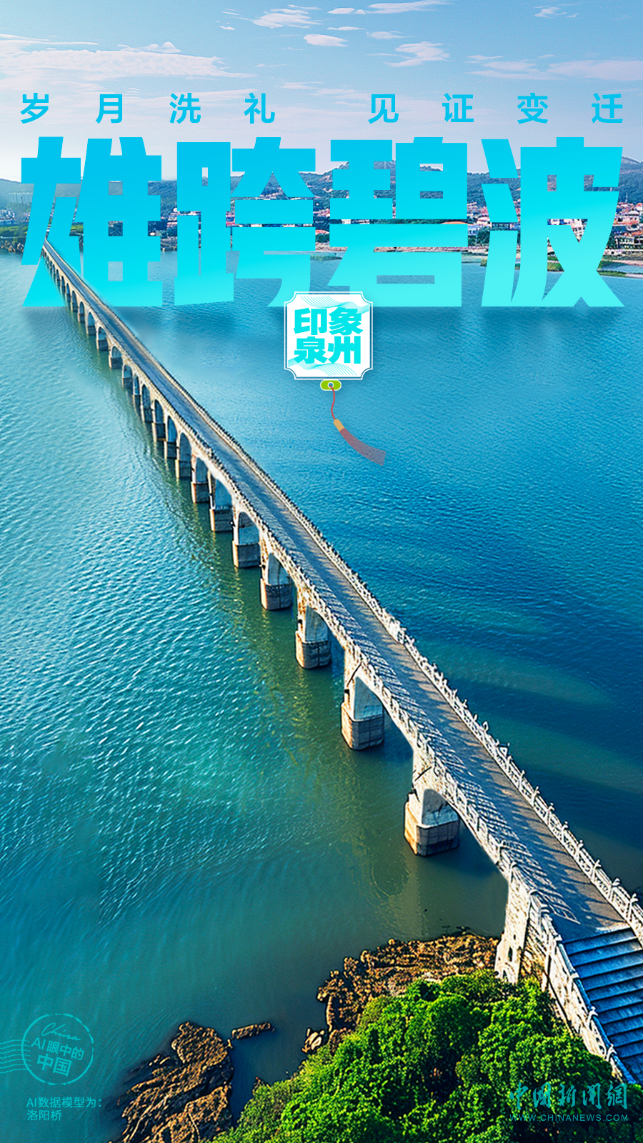 2024-01-25 12:35:40 来源:中国新闻网 责任编辑:黄丽红 作者:想了解一座千年古城,不妨就去看看那里的古桥与名塔吧!安平桥、洛阳桥、顺济桥,当年连通八方客旅往来,而今承载千年历史脉络。六胜塔、万寿塔,曾经是来往船舶的航向标,现在更是古城泉州的独特“名片”。一砖一石,皆藏着岁月的匠心独运;一桥一塔,尽诉说着泉州城的变迁与繁华。 跟随一组AI海报,去看刻画在泉州的时光故事↓↓↓ —洛阳桥— 由宋代官方主持建造的大型跨海石桥 始建于1053年,1059年落成 历代修缮,至今保存完好