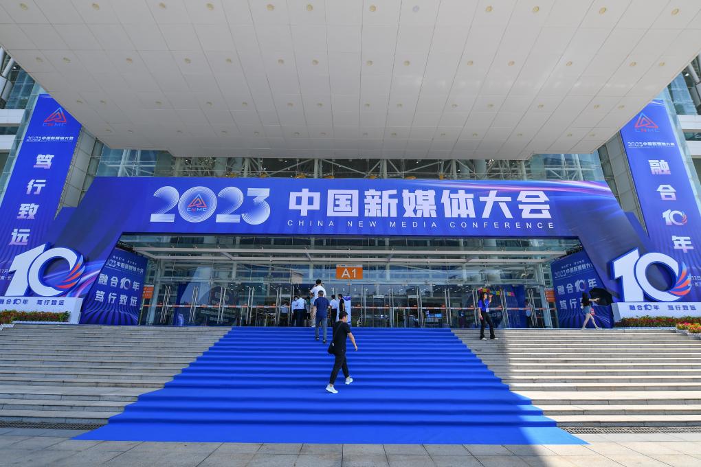 这是2023年7月12日拍摄的2023中国新媒体大会中国新媒体技术展外景。新华社记者 陈泽国 摄 “我们要加快推动媒体融合发展,使主流媒体具有强大传播力、引导力、影响力、公信力” “我们推动媒体融合发展,是要做大做强主流舆论,巩固全党全国人民团结奋斗的共同思想基础,为实现‘两个一百年’奋斗目标、实现中华民族伟大复兴的中国梦提供强大精神力量和舆论支持。” 2019年1月25日,中共中央政治局集体学习的“课堂”从中南海搬到媒体融合发展第一线。习近平总书记在重要讲话中,指明了媒体融合发展的重大意义。 信息化为我们带来了难得的机遇,运用信息革命成果,加快构建融为一体、合而为一的全媒体传播格局,成为掌握信息化条件下舆论主导权、广泛凝聚社会共识的题中之义。 党的十八大以来,习近平总书记把握全局、审时度势,作出推动传统媒体和新兴媒体融合发展的重大战略部署。一批形态多样、手段先进、具有竞争力的新型主流媒体发展壮大,不断开创媒体融合发展的新局面。 2023年7月,湖南长沙,2023中国新媒体大会开幕。其中,人工智能技术的新应用、“媒体+”新场景等内容,吸引了众多参观者。 不少与会代表表示,主流媒体正在加快推进智能化、数字化转型,拓展更多应用场景,用受众喜欢的方式打开内容创新的广阔空间。 从“相加”迈向“相融”,从“你是你、我是我”变成“你中有我、我中有你”再到“你就是我、我就是你”,在习近平文化思想指引下,全方位、深层次的媒体融合态势初步显现—— “报网端微”百花齐放,文图音视竞相发力,通过创新手段、全媒呈现,传统媒体和新兴媒体在时代变革中融合发展。 “AI合成主播”上岗播报,VR直播带来视听新体验,主流媒体积极拥抱5G、元宇宙、生成式人工智能等新技术,在时代变革中“破茧蝶变”。 向“融”而进,和“合”弥新,融合发展局面大开,舆论生态气象一新。 面向未来,深刻认识全媒体时代的挑战和机遇、全面把握媒体融合发展的趋势和规律,持续加快构建融为一体、合而为一的全媒体传播格局,宣传思想文化战线使命如磐、重任在肩。 牢记习近平总书记嘱托,宣传思想文化战线锚定壮大主流价值、主流舆论、主流文化目标任务,不懈努力、矢志前行。