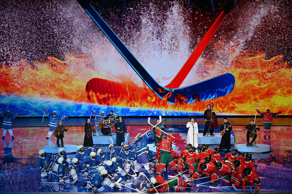 2月17日,演员在开幕式上表演。新华社记者 邓华 摄 体育精神 自信自强 挥杆、冲刺,冰球少年在舞台中央集合。起速、滑行,速滑小将穿行于舞台前方。 开幕式在内蒙古冰上运动训练中心速度滑冰馆内进行,导演团队把专业的冰道融入舞台中,将赛场也作为舞台的一部分。冰雪成为开幕式最重要的视觉元素,一片雪花唤醒沉睡的大地,冰球飞旋点燃运动激情。“更快、更高、更强——更团结”的奥林匹克格言与中华优秀传统文化相映生辉、澎湃激荡。