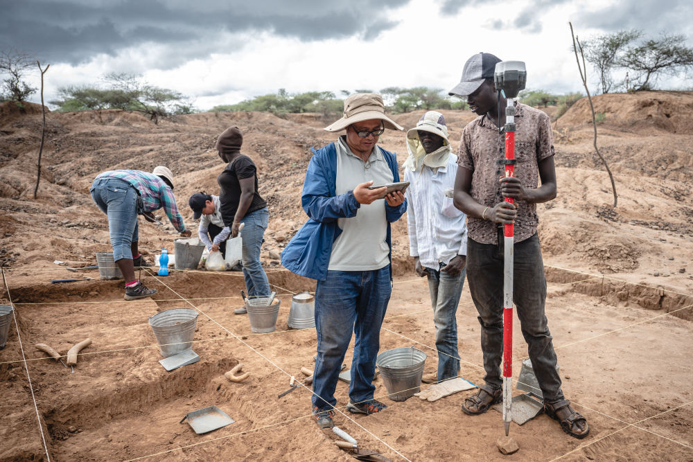 2023年11月3日,中肯联合考古队队员在位于肯尼亚巴林戈郡马里加特镇的考古现场工作。新华社记者 王冠森 摄