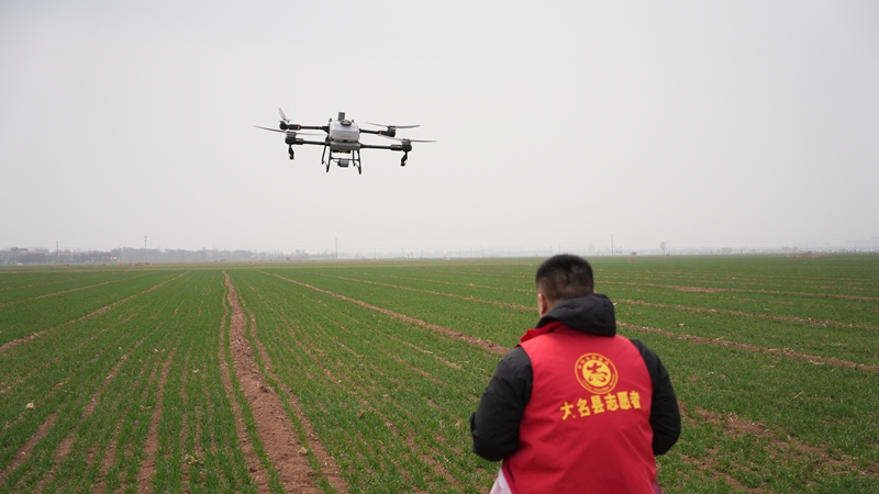 在惠民县前韩村的高标准农田里,小麦镇压机正在作业。人民网记者 王天乐摄 “现在,小麦进入返青期,跟老式麦苗镇压技术相比,小麦镇压机能够缩小土壤缝隙,起到保墒、保肥、提温的作用。”在山东省滨州市惠民县前韩村的高标准农田里,农户咸国强每年种两季小麦、一季玉米,放眼望去,500亩小麦苗齐根壮。 “新技术确实好啊,给我们带来了实实在在的收益!”咸国强告诉《记者去哪儿》栏目,近年来,接受的新技术培训不少,用上的新设备也不少,能喷洒施药的植保无人机提升了劳动效率、玉米精量播种机能让每颗种子都精准落到种穴之中…… 据惠民县农业农村局农技推广研究员马德辉介绍,当前,农业生产机械化程度大幅提高,以小麦播种过程为例,以北斗技术支持的精密设施开始普及使用,不仅播种整齐,还能大幅提高出苗率。 一路向西南,在河北省邯郸市大名县堤上村的田地里,“飞手”们正操控农业植保无人机按照既定航线在田地里飞行穿梭,为小麦进行喷洒作业。