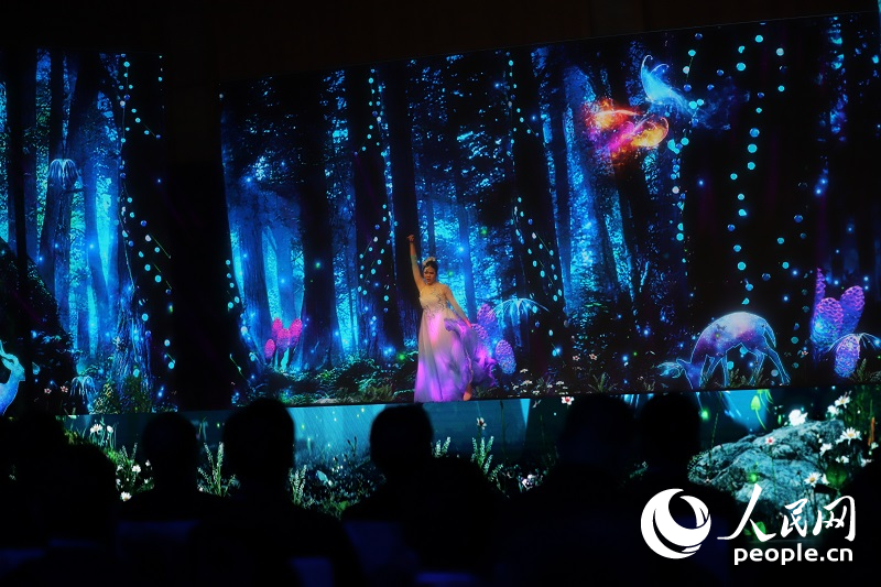 北京舞蹈学院原创舞蹈《万物有灵》将舞蹈艺术与全息投影、虚拟形象等技术结合,呈现真人舞者在森林中与精灵、蝴蝶、大象互动共舞的奇妙场景。国家一级演员、北京舞蹈学院副教授王磊表示,这支全新编创的作品是以肢体艺术和数字媒体相融合的方式,表达人与自然和谐共生,人与技术共享未来的主题,数字技术打开内容创作新的维度,赋予舞蹈艺术新的生命。