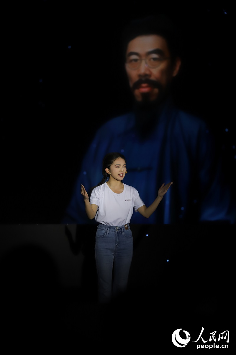数字人“闻一多”与青年学生隔空对话。人民网记者 李发兴摄