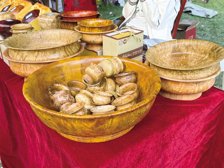 在加查县,木碗制作技艺代代相传。选材、切割、打磨、雕刻……在传承人独特的制作方式下,一个个纹路精美的藏式木碗被制作了出来。他们凭借精湛的技艺和丰富的经验,将一块块普通的木头变成了一件件精美的艺术品。“现在,来买木碗的人不仅仅只是本地人了,很多游客也会买了带回去当伴手礼,我做的木碗能够销往全国各地让我感到很开心。”扎雪木碗制作技艺传承人洛桑次真说。