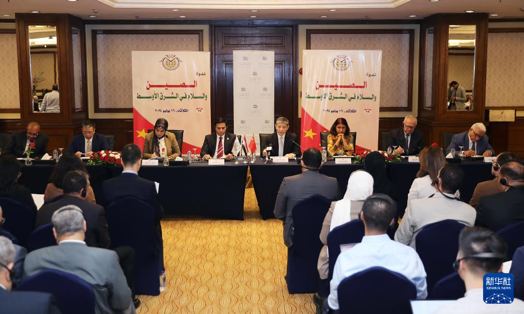 这是7月16日在埃及首都开罗拍摄的“中国与中东和平”研讨会现场。新华社记者 王东震 摄