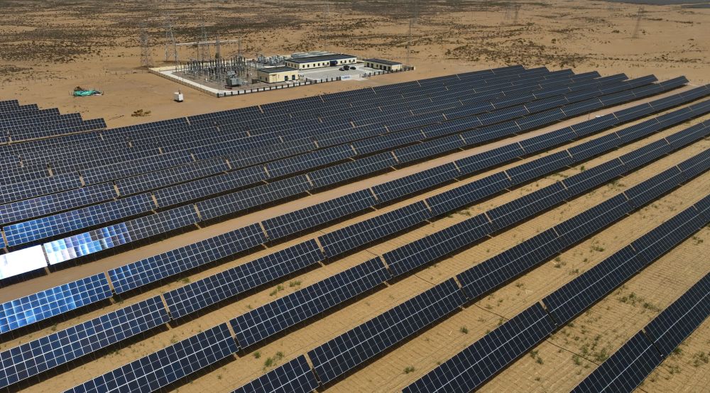酷夏中,内蒙古自治区巴彦淖尔市磴口县境内极度缺水的乌兰布和沙漠里,一排排光伏板整齐排列。光伏板吸收大量阳光,不仅可以输出“绿色电力”,还能在板下为梭梭等沙生植物提供更适宜的生长空间。梭梭能发挥固沙之用,还能接种肉苁蓉,助力发展中药材种植产业。荒漠化治理、绿色能源、农业创收,就这样结合在一起,形成一条“光伏发电+生态治理”的绿色转型链条。