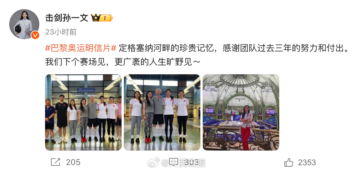 击剑孙一文 :我们下个赛场见,更广袤的人生旷野见~