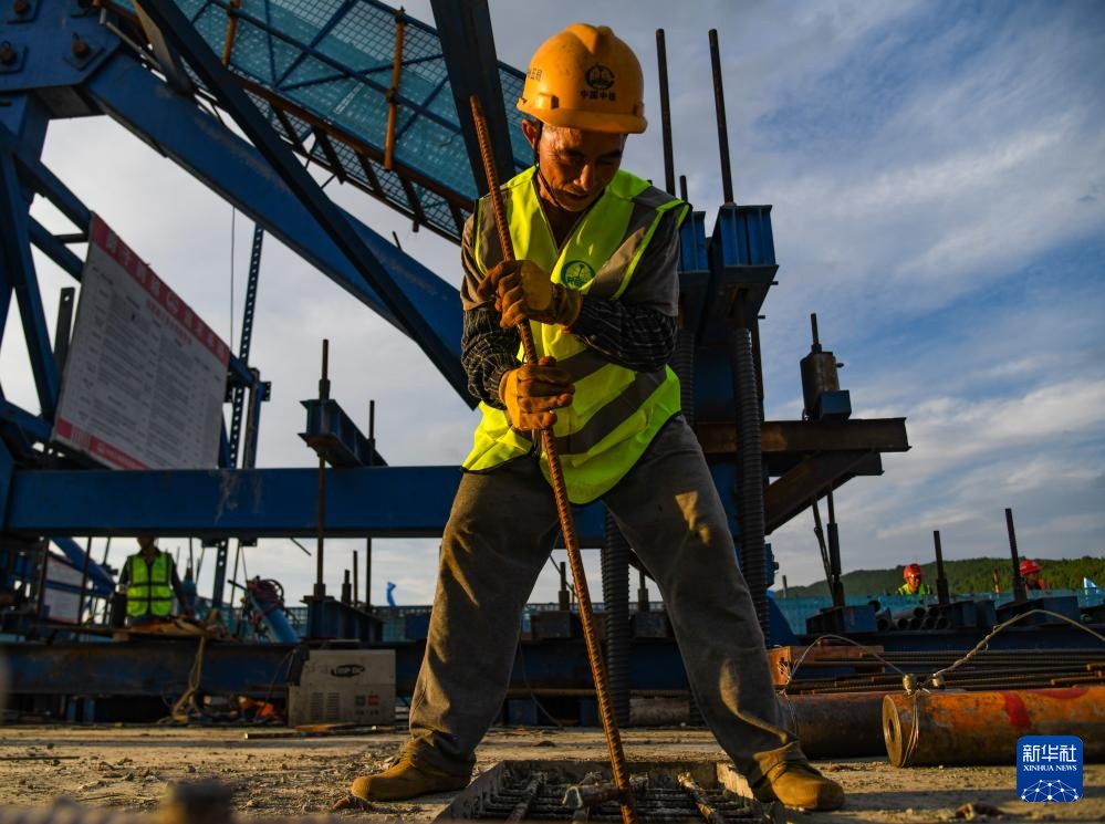 8月16日,中铁五局的工人在嘉陵江特大桥上施工作业。