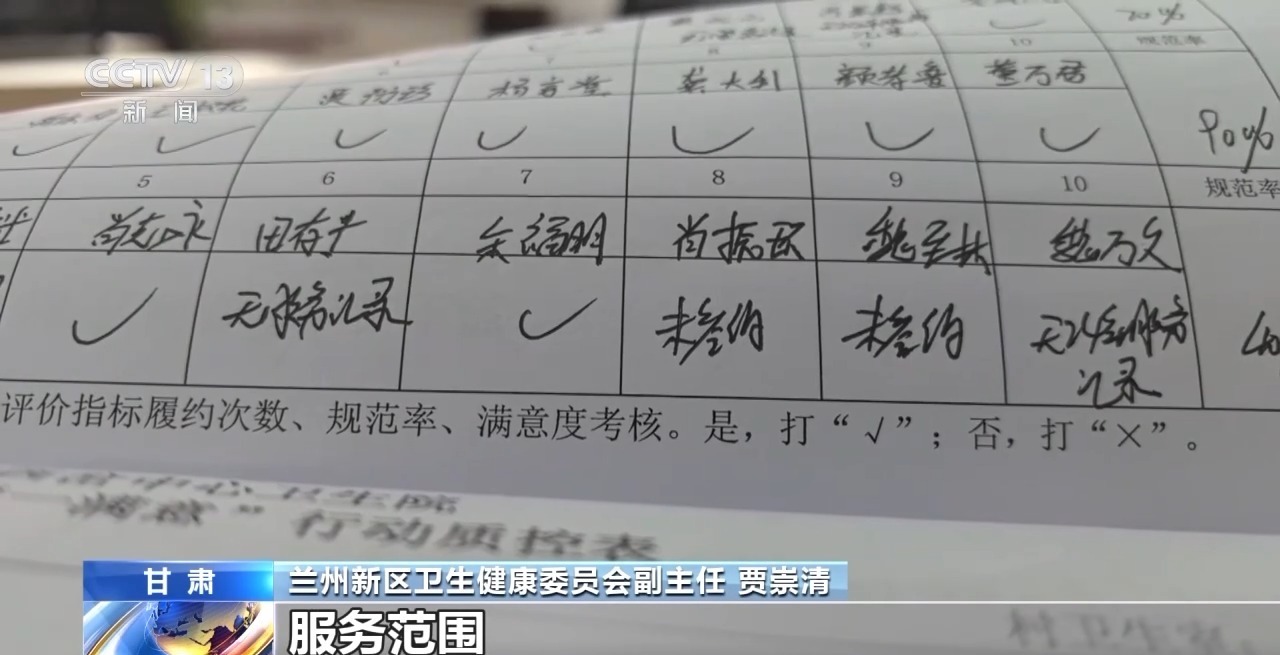 兰州新区西岔中心卫生院院长 苏光伟:之前好多的工作停留在纸质的表面签约。只是签约了,有时候一年连一次的服务记录都没有,考核机制也不完善,家庭医生的工作积极性也不高,老百姓对这个工作的认可度也不好。 2023年7月,兰州新区对家庭医生团队的考核体系进行了改革,考核指标由原来的只考核签约率,增加了考核服务频次、服务质量等多个维度。