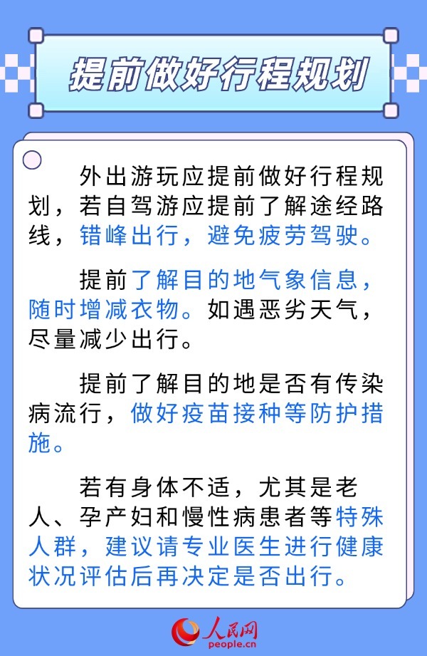 中秋假期临近,短途游升温。这期间人员流动和聚集性活动增多,传染性疾病感染风险加大。同时,外出旅行可能会遇到天气、住宿条件、卫生环境、旅途劳累等因素影响,导致身体不适。假期出游如何做好健康防护?为此,人民网采访了清华大学第一附属医院全科医学科主任医师姜岳。