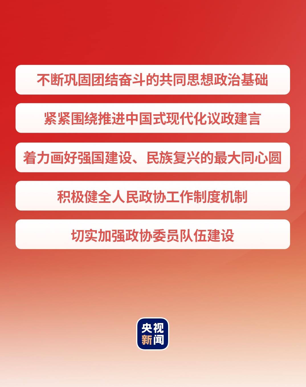 在这次庆祝大会上,习近平总书记从5个方面提出要求,寄望人民政协发扬优良传统,牢记政治责任,坚持党的领导、统一战线、协商民主有机结合,充分发挥专门协商机构作用,为推进中国式现代化广泛凝聚人心、凝聚共识、凝聚智慧、凝聚力量。