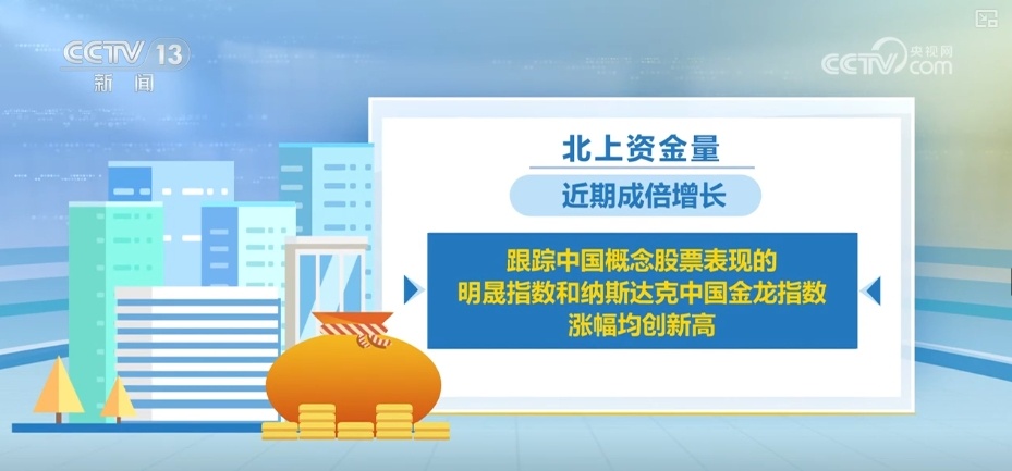 被视为外资购买“通道”的北上资金量近期成倍增长。跟踪中国概念股票表现的明晟指数和纳斯达克中国金龙指数涨幅均创新高。 外资正跑步入场 持续加仓中国资产 与此同时,专家统计,不少对冲基金也加快配置中国股票,购买速度创出新高。