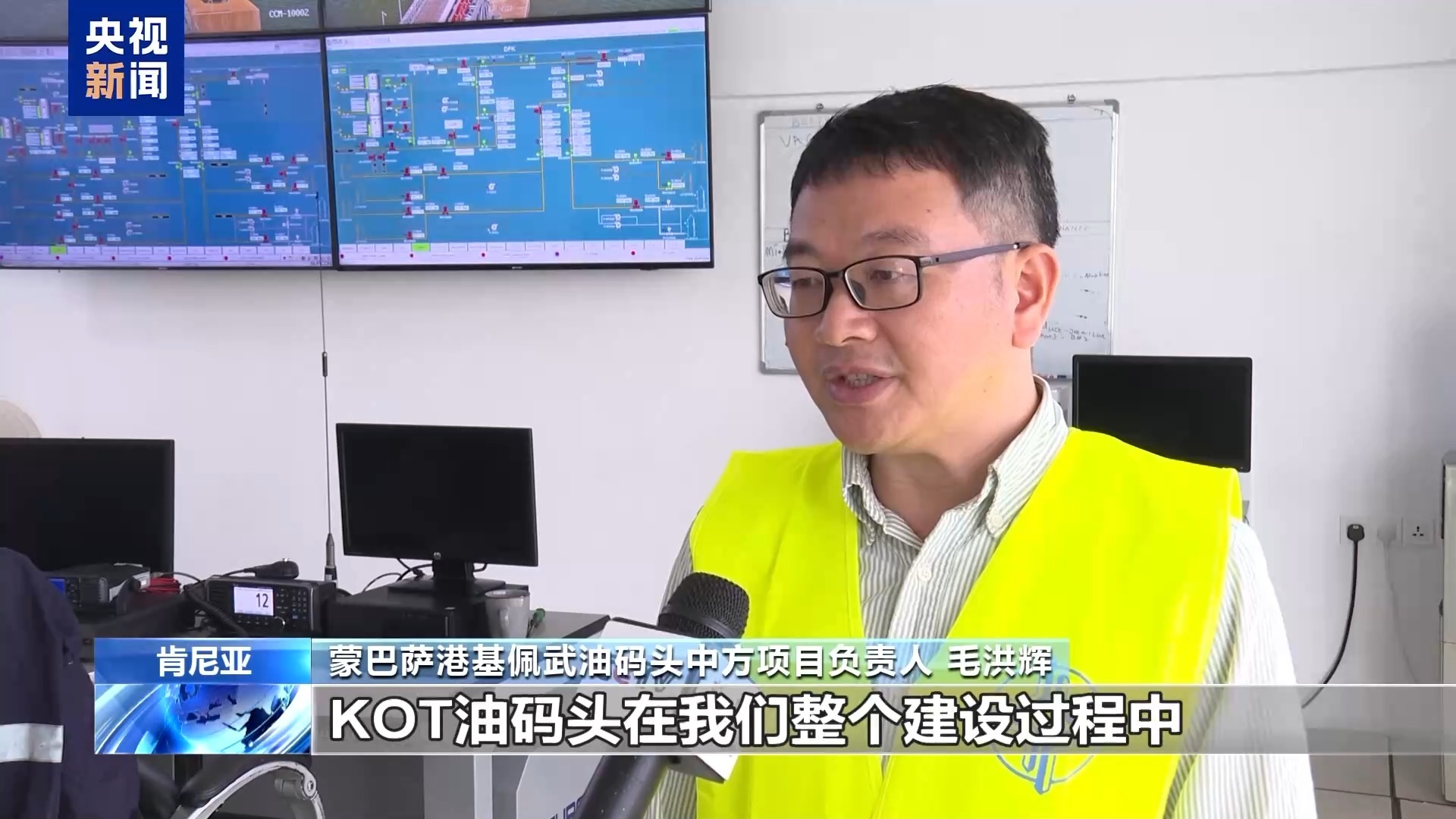 蒙巴萨港基佩武油码头中方项目负责人 毛洪辉:KOT油码头在整个建设过程中有几点创新,第一点是采用了岸上预制,一次拖航,沉管安装的海底管道安装技术,这个在东非乃至世界都是首次应用的一个工艺。第二点,项目采用了大流量高精度的超声波流量计,提高了计量的精度。第三点,大家也看到这里,这个项目采用了PLC自动化监控系统,提高了管控的自动化程度,还有精度。
