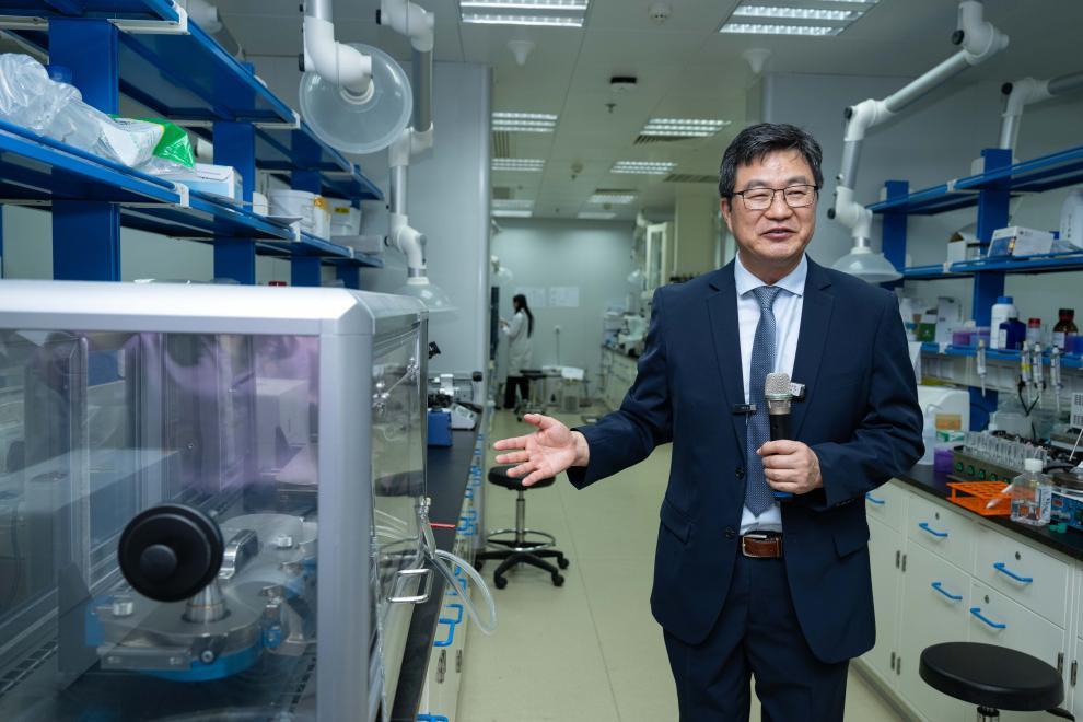 2024年6月17日,中药质量研究国家重点实验室(澳门大学)主任、澳门大学中华医药研究院院长陈新介绍实验室情况。