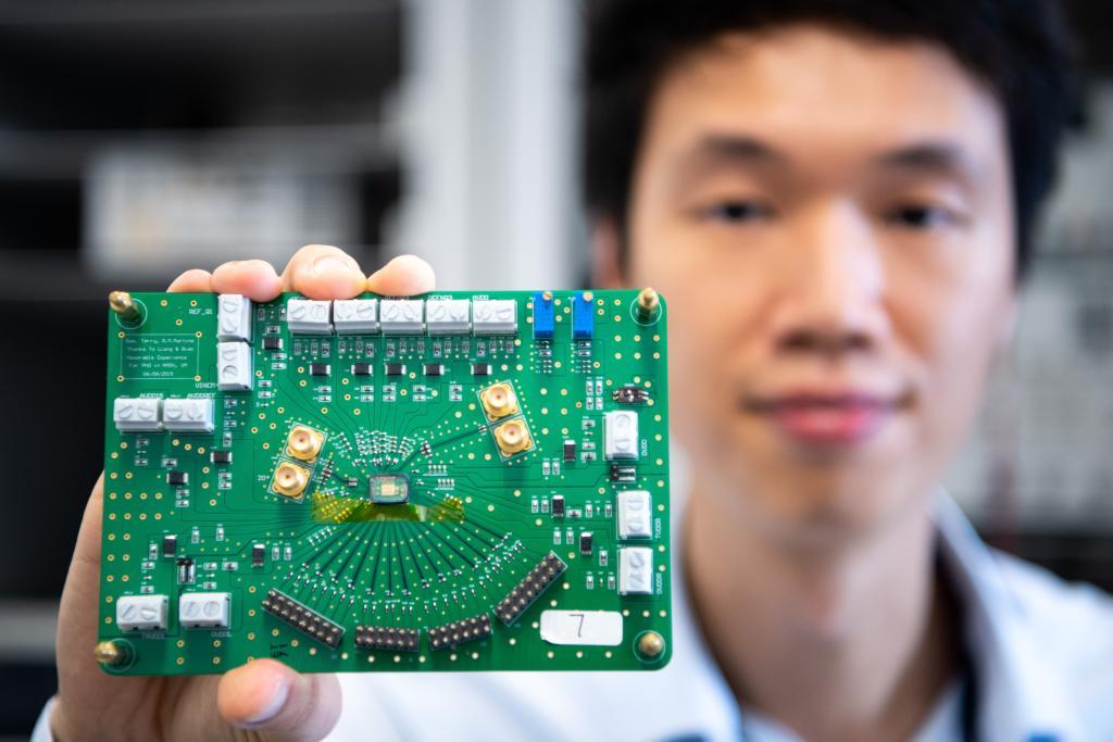 2019年11月1日,研究人员陈知行在模拟与混合信号超大规模集成电路国家重点实验室(澳门大学)展示自主设计的模拟数字转换器芯片。