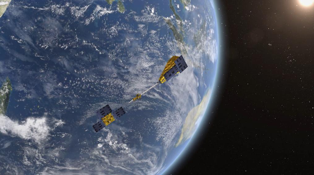图为“澳科一号”卫星在轨示意图(右为A星,左为B星)。