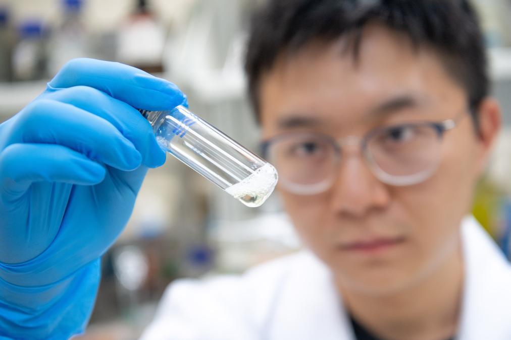2019年11月1日,在中药质量研究国家重点实验室(澳门大学),学生观察药物样品的溶解状态。