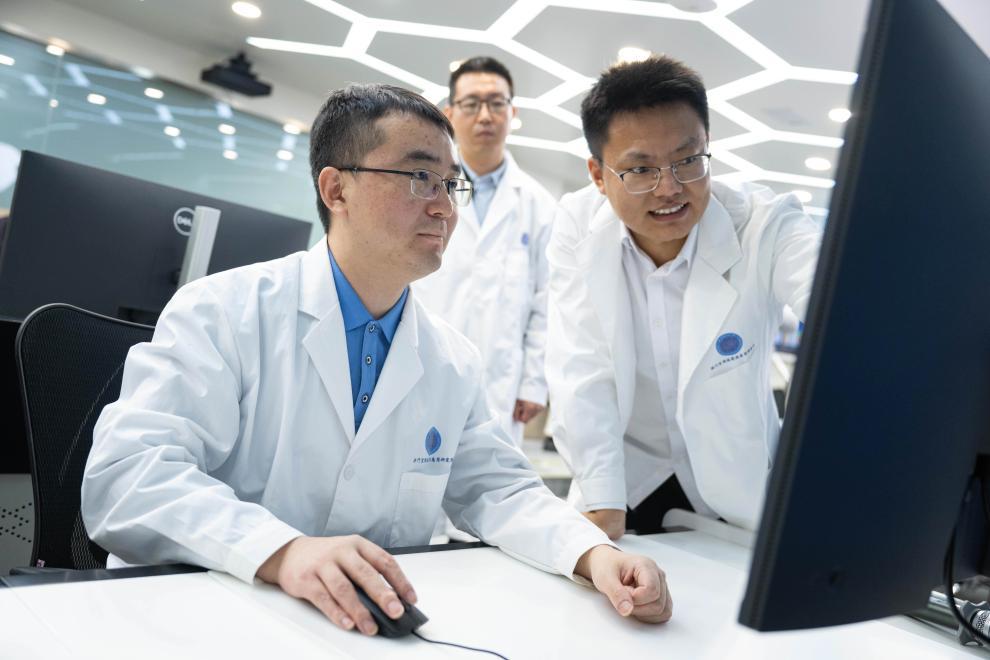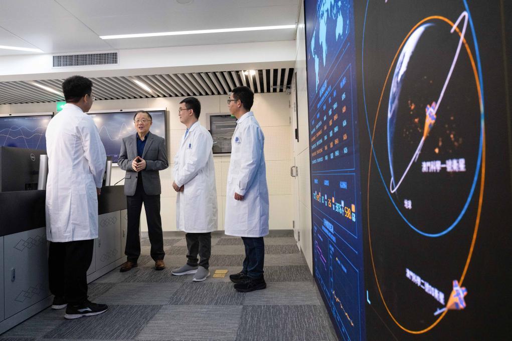 2024年12月4日,“澳科一号”卫星项目助理研究员尹亮(左一)与同事交流。