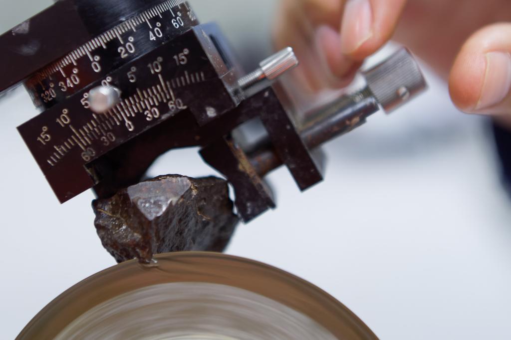 2019年10月31日,学生在月球与行星科学国家重点实验室(澳门科技大学)切割陨石。