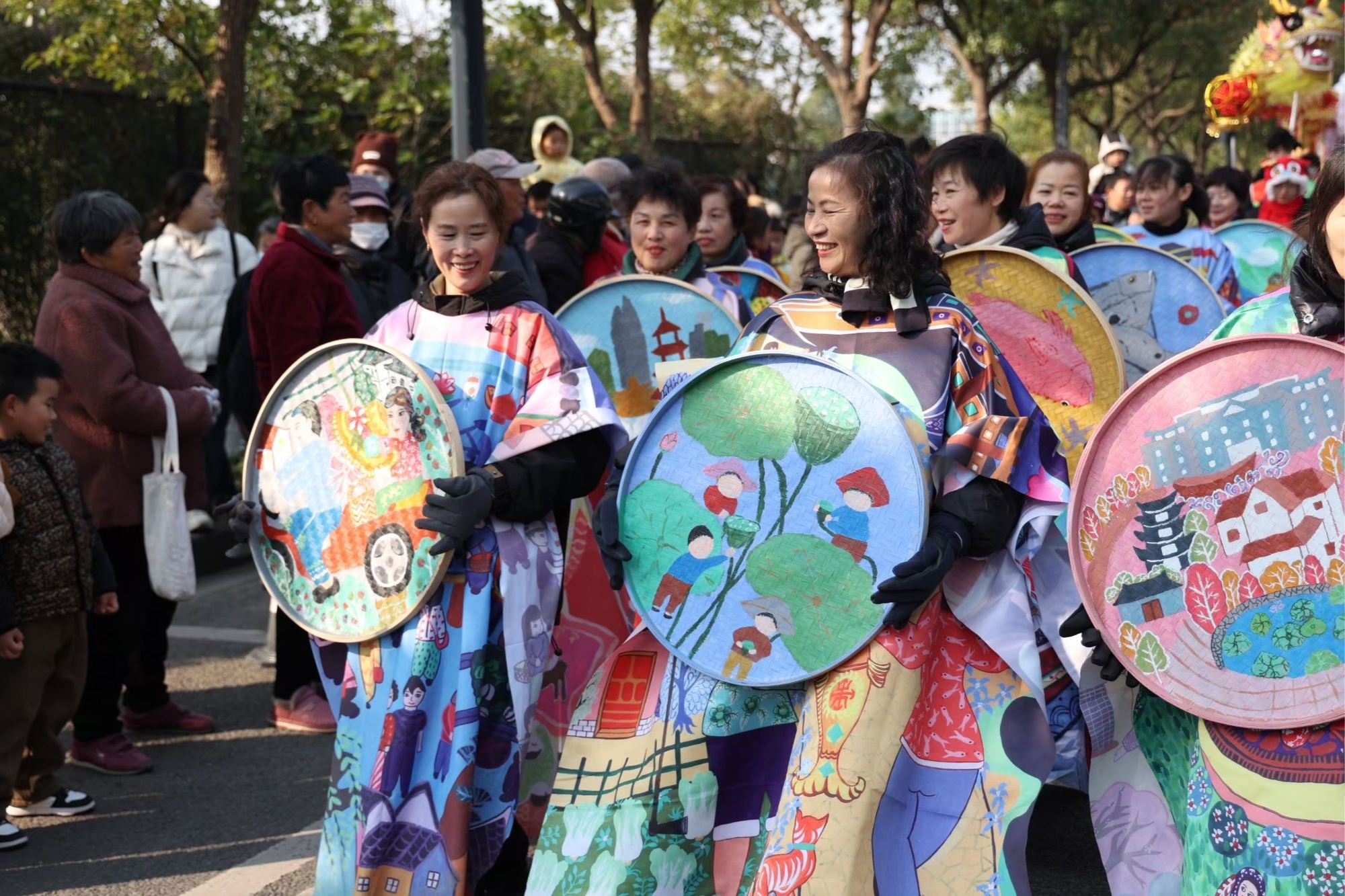 鱼灯、船鼓、腰鼓、高跷、农民画秀……活动在一场民俗巡游中拉开了序幕,约500名来自澥浦各村社的民间文艺爱好者组成四个方阵开展巡游和表演。他们身着传统服饰,迈着欢腾的步伐,在喧天的锣鼓声中全方位展示着澥浦这座千年古镇的老底子文化。