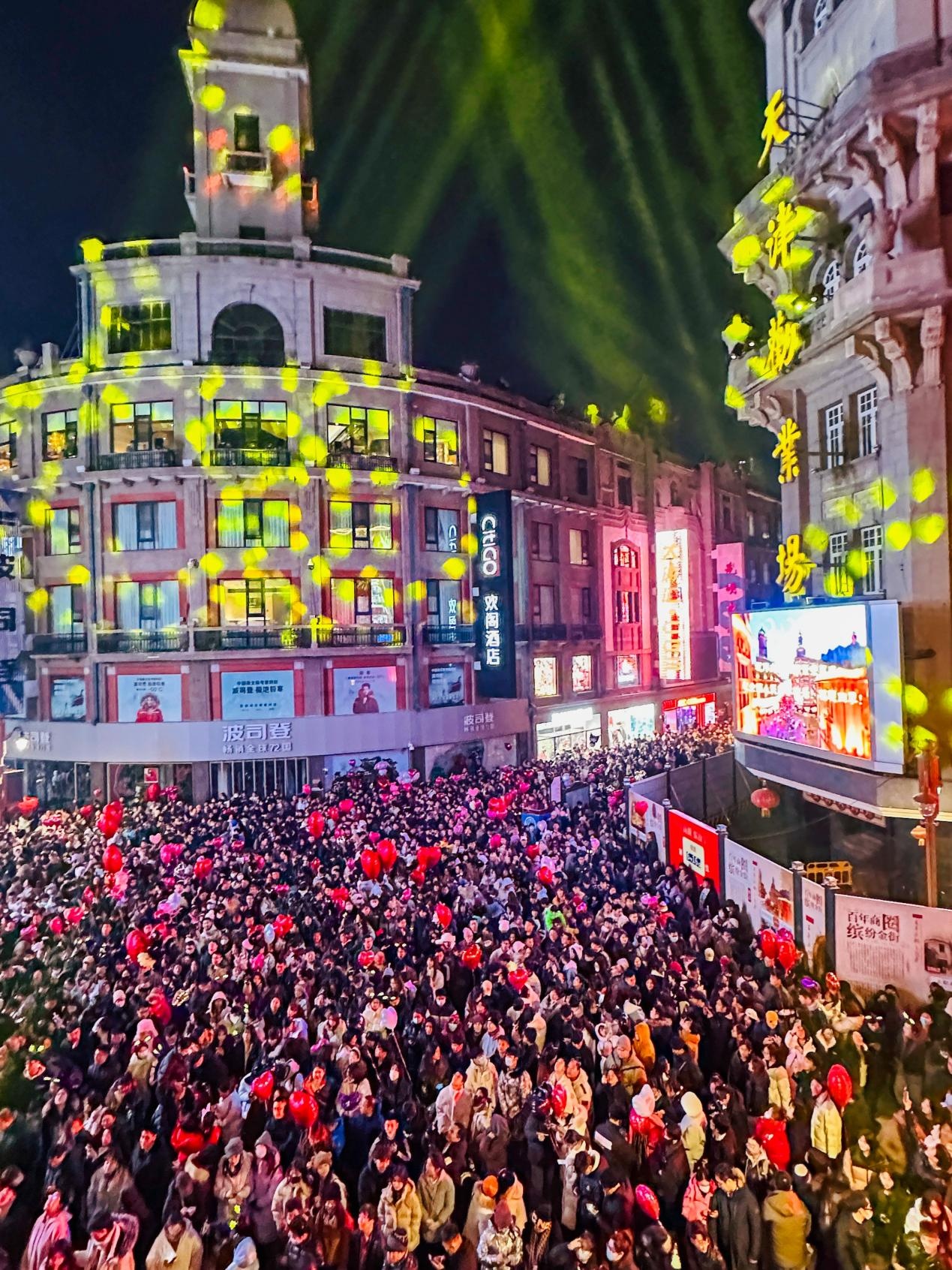 人们在天津金街上共同迎接2025新年到来 和平区融媒体中心供图
