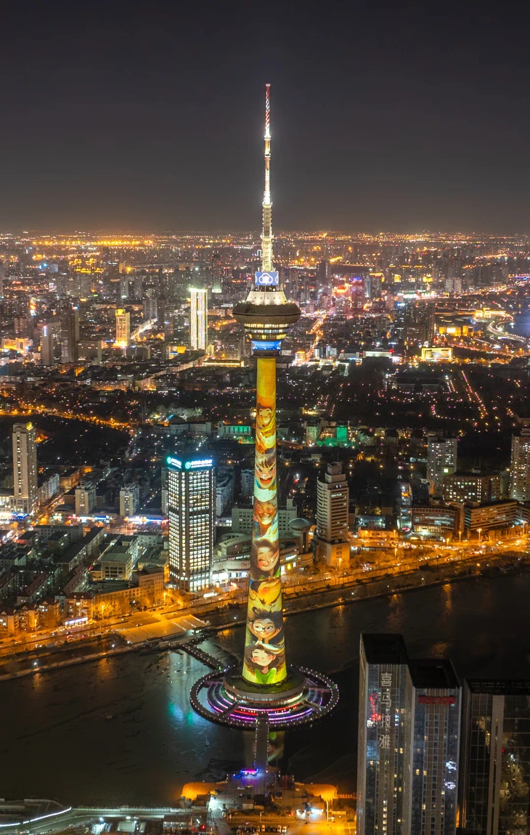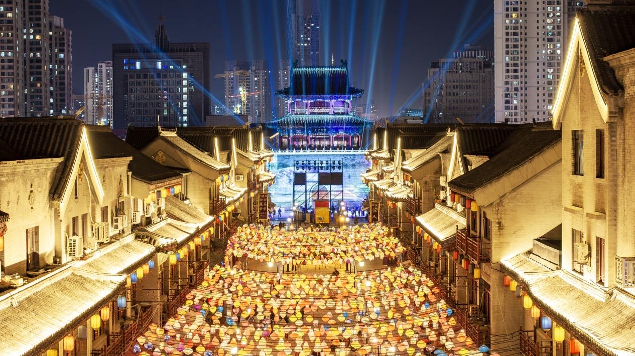 灯光璀璨的天津古文化街 南开区融媒体中心供图 无论是奋斗在生产一线的各行各业工作者,还是安守在家中的亲朋好友,真情友爱与关心鼓励都成为我们人生路上的温馨一幕,化作珍贵的回忆。跨年夜津城华灯点点,喜气洋洋,人气满满,热闹非凡。大红灯笼映照街巷,老城鼓楼在光影交织中描绘出古今交融的壮美诗篇,京津冀同庆2025新年,三地在梦幻奇景中各展新姿。古文化街古朴典雅,喜庆萦怀,彰显“津”派文化的厚重与大气,令人流连忘返。天津地标天塔塔身上投映出张张笑脸,诉说着一段段令人难忘的温馨故事,幻化为城市夜空中最令人回味的情怀。