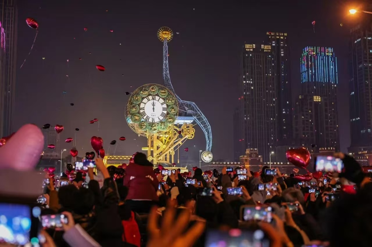 人们在世纪钟前迎接新年到来 河东区委网信办供图