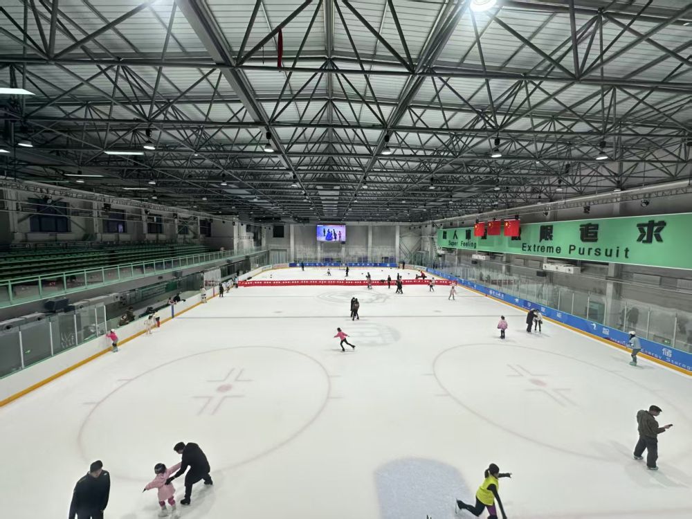 2025年1月,市民在大连冰熊冰上运动中心冰场运动。该冰场应用了大连冰山集团研制的制冰制冷控制系统。(孙涛 摄)