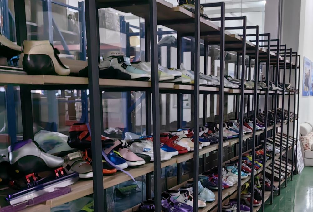 2025年1月2日,长春百凝盾体育用品器材有限公司工厂里摆放的冰鞋样品。新华社记者王帆 摄