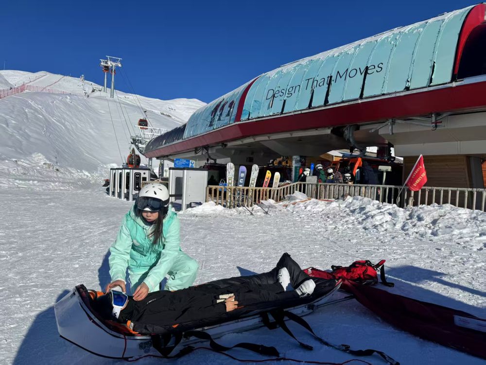 一次巡逻时,帕提曼看到一名雪友横躺在雪道中间,雪板被甩出很远,上前查看后发现其大腿骨折。她立即进行夹板固定、纱布包扎等操作,随后协助转运伤员。