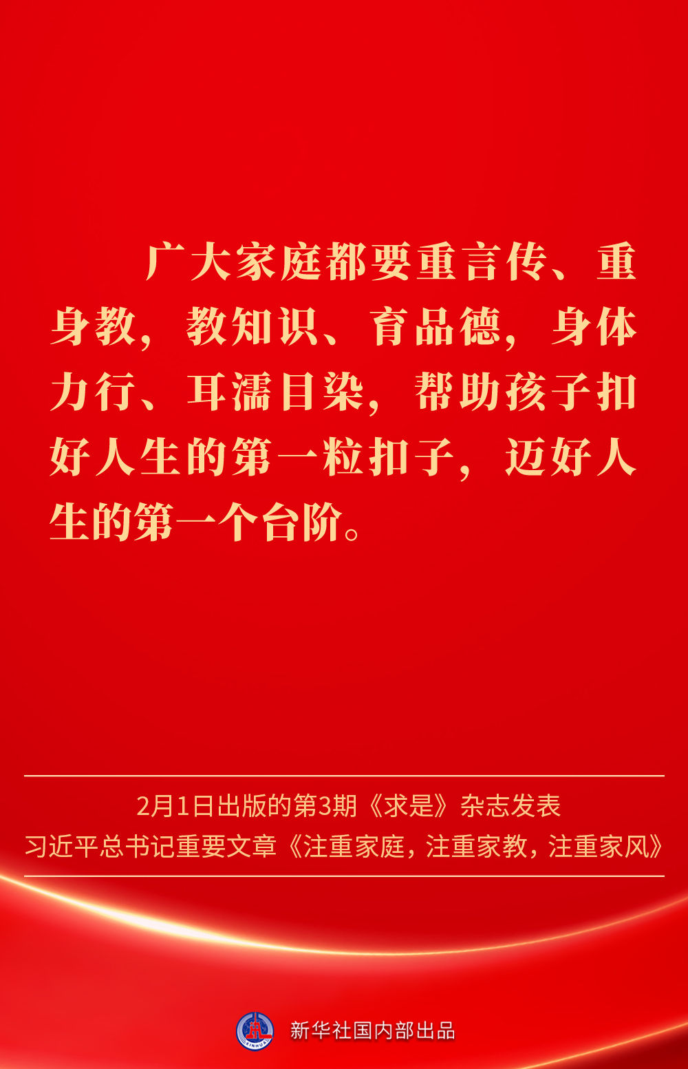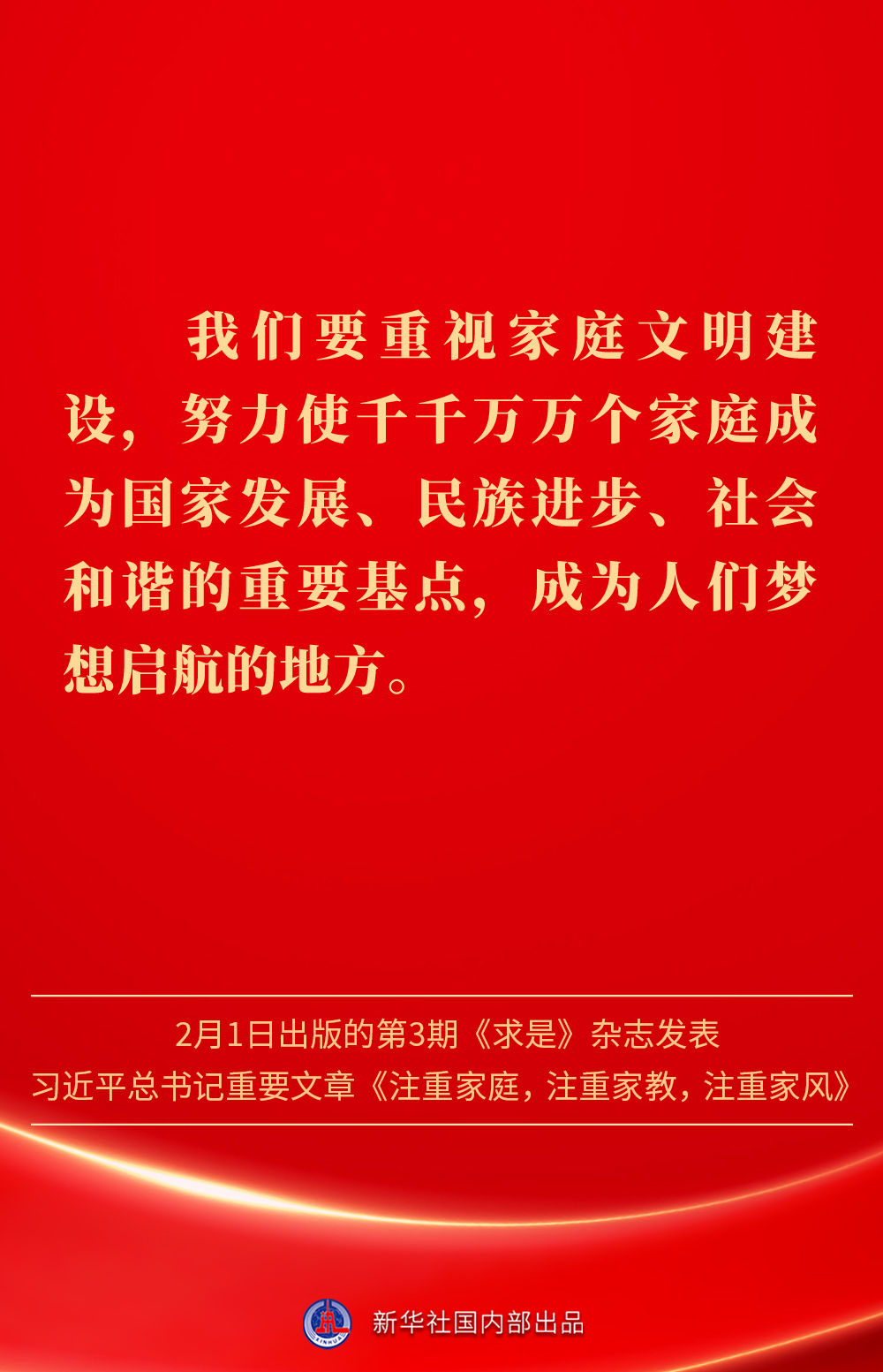 万家团圆共庆新春佳节之际,2月1日出版的第3期《求是》杂志发表习近平总书记重要文章《注重家庭,注重家教,注重家风》。为什么要注重家庭、家教、家风?如何做好家庭文明建设?习近平总书记这样阐述——