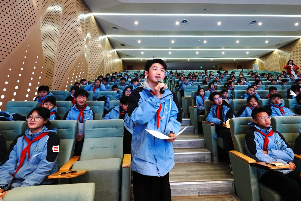 2月17日,上海师范大学附属奉贤实验中学举行“雪龙探秘新征程 海韵逐梦共扬帆”活动。这是该校学生通过视频连线向中国第41次南极考察队队员提问。