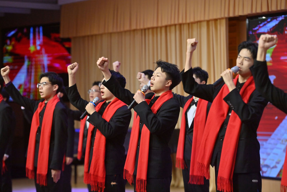 2月17日,广西梧州市开展“求实创新共成长,团结筑梦向未来”开学第一课主题活动。这是梧州市第八中学学生演唱歌曲《中国人》。