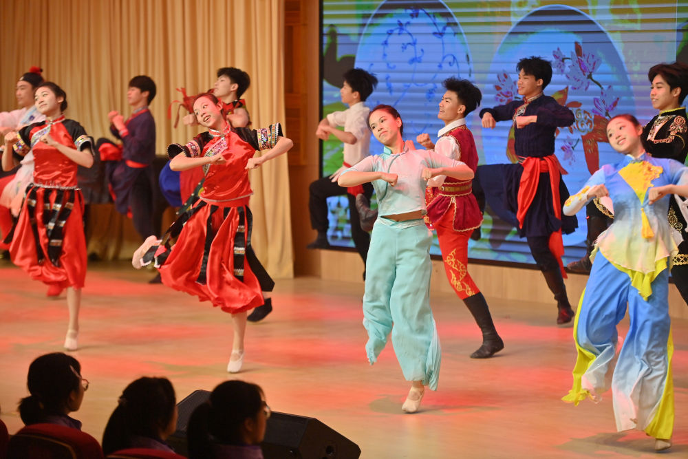 2月17日,广西梧州市开展“求实创新共成长,团结筑梦向未来”开学第一课主题活动。这是梧州市第八中学学生在跳民族舞蹈。