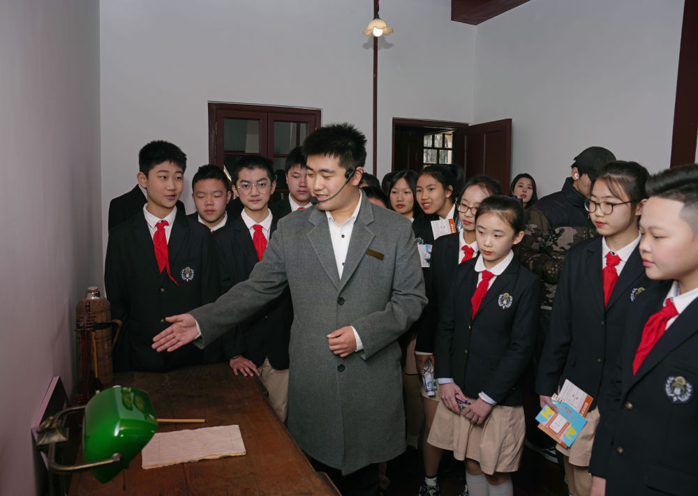 2月17日,上海市静安区教育学院附属学校的学生在中共中央秘书处机关旧址纪念馆内参观。