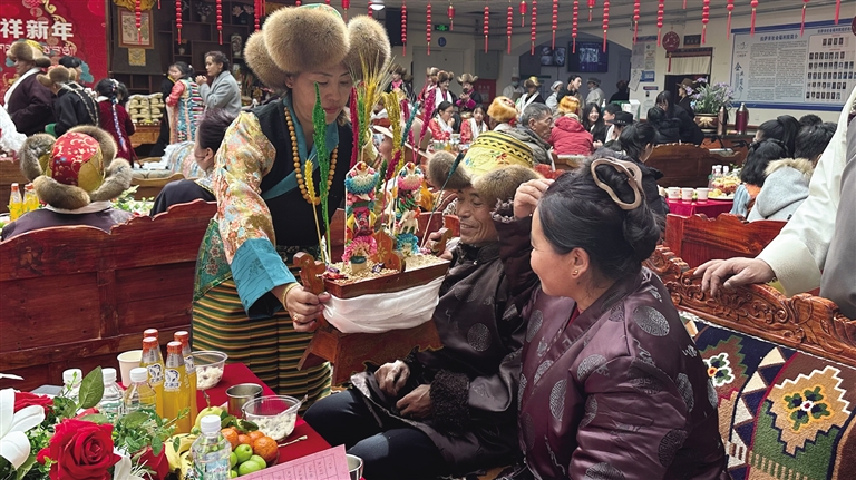 拉萨市社会福利院工作人员白央告诉记者,藏历新年前一周,她们就为老人们洗澡、修剪指甲,对福利院进行全面大扫除。为营造节日氛围,还提前为老人装扮居住环境,挂上红灯笼,摆上切玛盒等。“这是我在福利院工作的第二年。藏历新年虽不能陪伴在父母身边,但与老人们一同过年,让我深感幸福且意义重大。”