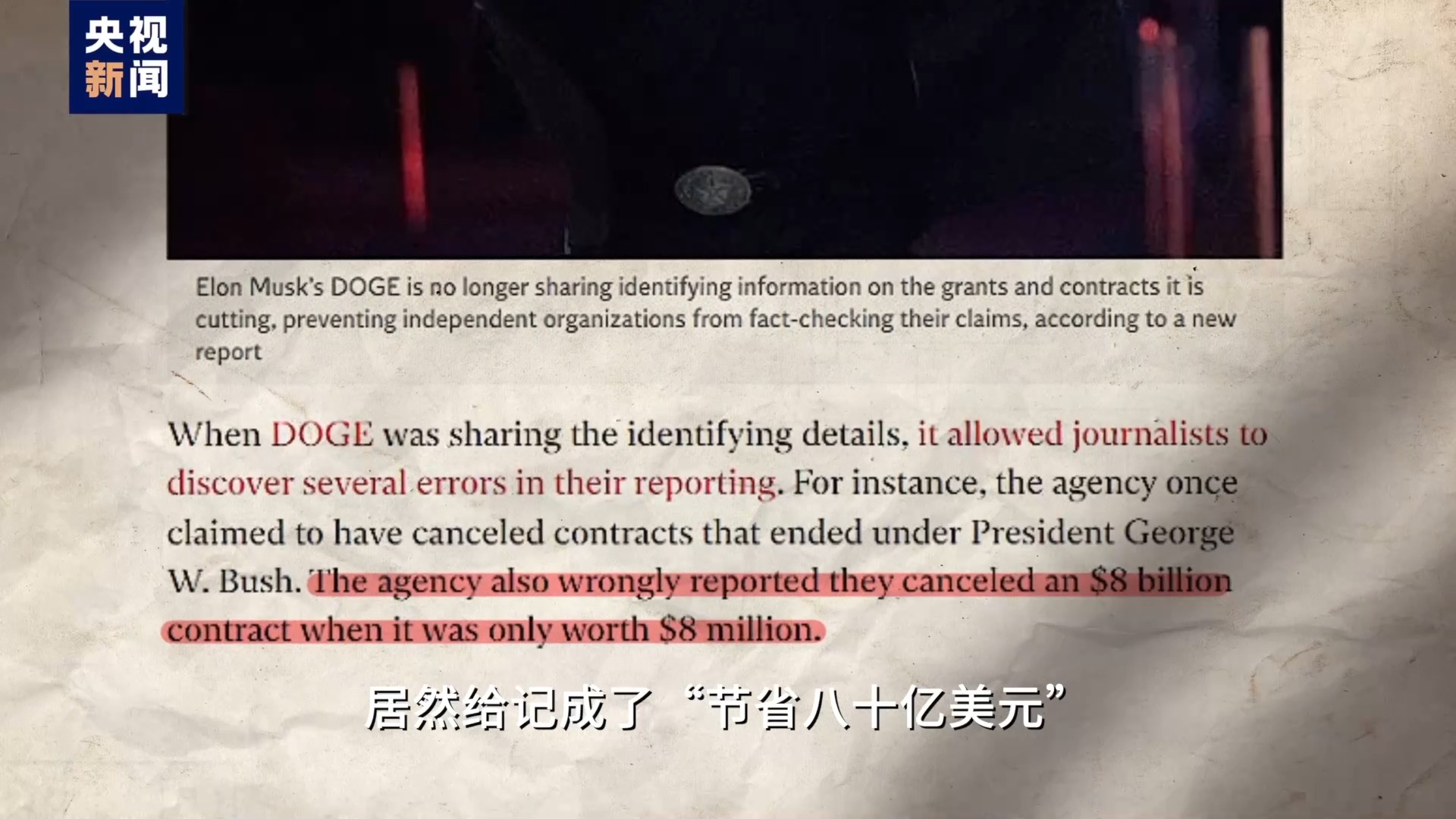 “政府效率部”查美国政府账的同时,美国媒体也在查它的账,查出的假账同样不少。比如一个八百万美元的合同被取消,到了政府效率部的“功劳簿”上,居然给记成了“节省八十亿美元”。马斯克对此的“改进”,不是更正记错的地方,而是不再公布省钱具体省在了哪,现在“政府效率部”网站上还有实时更新的省钱总额,但明细已经没了。 美国财政就像一辆在下坡路上狂飙的卡车:多个司机踩在方向盘上打来打去,乘客恐慌却无能为力,“政府效率部”坐在副驾驶拼命擦玻璃,“让视野更清晰情况更透明”,却没有一个人真去踩刹车。
