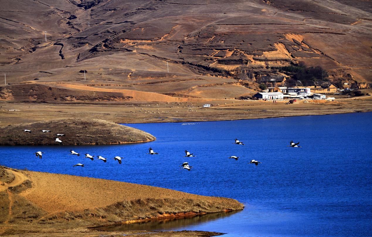 上千只黑颈鹤在这里栖息