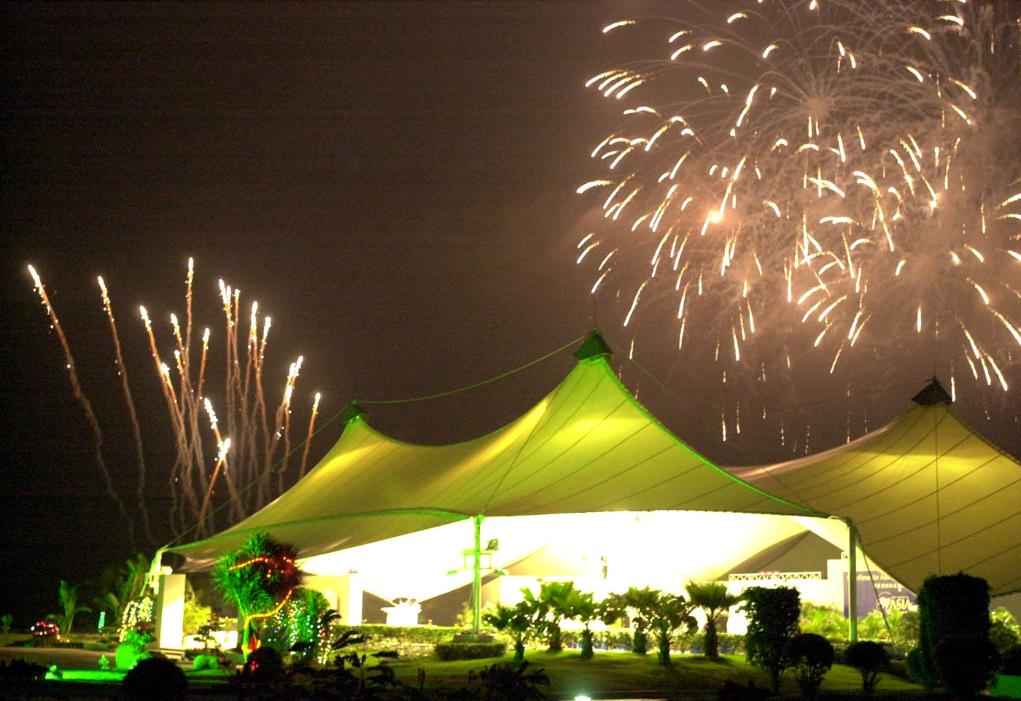 2002年4月11日晚,博鳌举办盛大焰火晚会,欢迎前来参加博鳌亚洲论坛首届年会的各国嘉宾。 新华社记者 姜恩宇 摄
