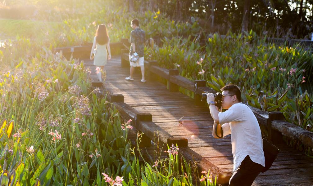2022年10月2日,游客在博鳌镇留客村游览拍照。新华社记者 杨冠宇 摄