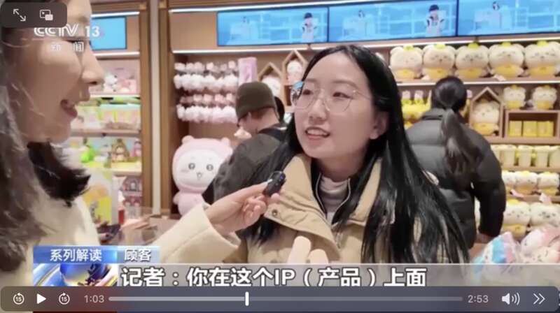北京朝阳区的一家IP联名店,可以看到首发、首秀的国产周边衍生品。截图来自央视新闻