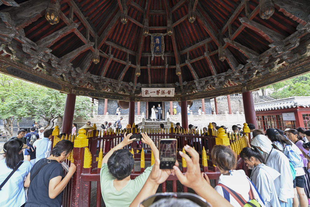 2024年,国产3A游戏《黑神话:悟空》横空出世,带火了位于山西临汾隰县的小西天景区。2024年国庆假期,这个常住人口不足10万的小县城,接待游客近10万人次。这是游客在小西天景区参观。