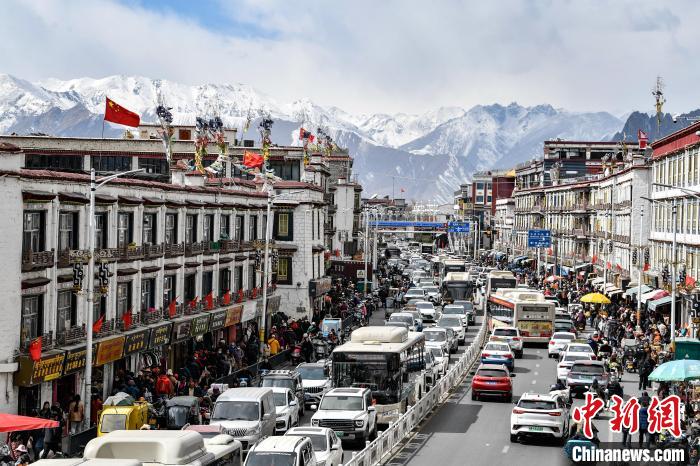 2月21日,拉萨市中心热闹街景。中新社记者 贡嘎来松 摄