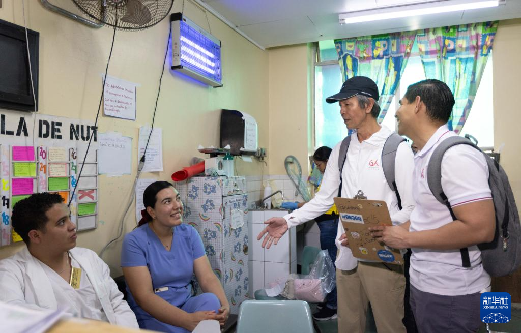 3月24日,在洪都拉斯首都特古西加尔巴的埃斯库埃拉医院,共享基金会团队向医护人员了解快速检测包使用情况。新华社记者 李梦馨 摄 洪都拉斯卫生部副部长布里安·埃拉索在接受记者采访时说:“基金会成员深入到全国各个地区,了解实际需求,并基于真实情况在登革热防治等关键领域为洪都拉斯提供了有力支持,我们深受感动。” 共享基金会还查看了医院废弃的饮用水出口,计划在洪推广直饮水项目。